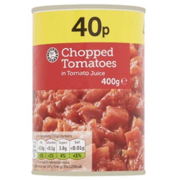 Euro Shopper Tinned Chopped Tomatoes are canned chopped tomatoes that come in a 400g can. They are a convenient ingredient for making a variety of dishes, such as pasta sauces, stews, soups, and more. The chopped tomatoes are packed in tomato juice and have a rich and tangy taste. They are an affordable option for those who want to enjoy the taste and benefits of tomatoes all year round.